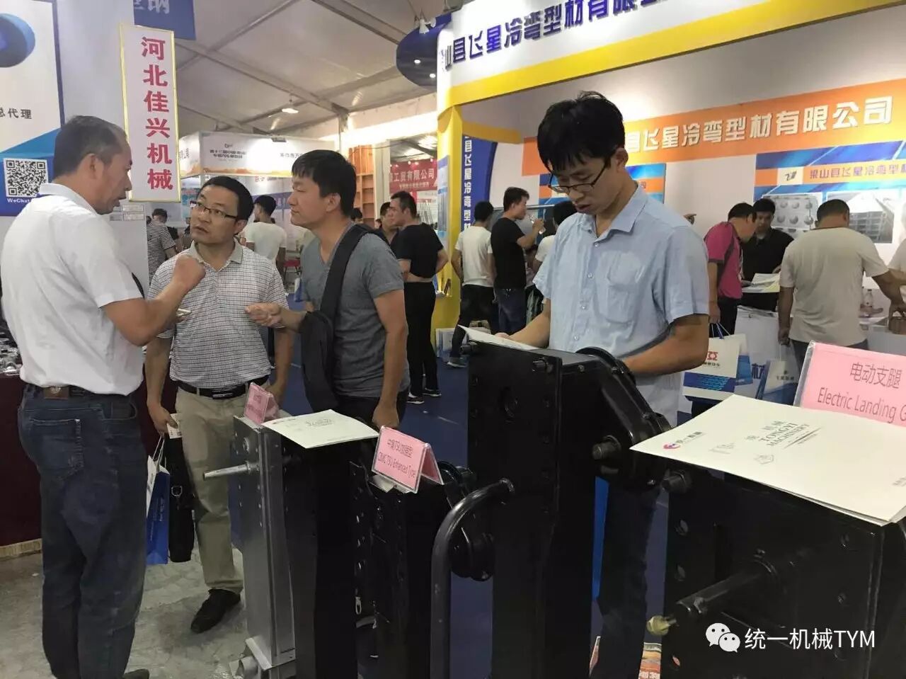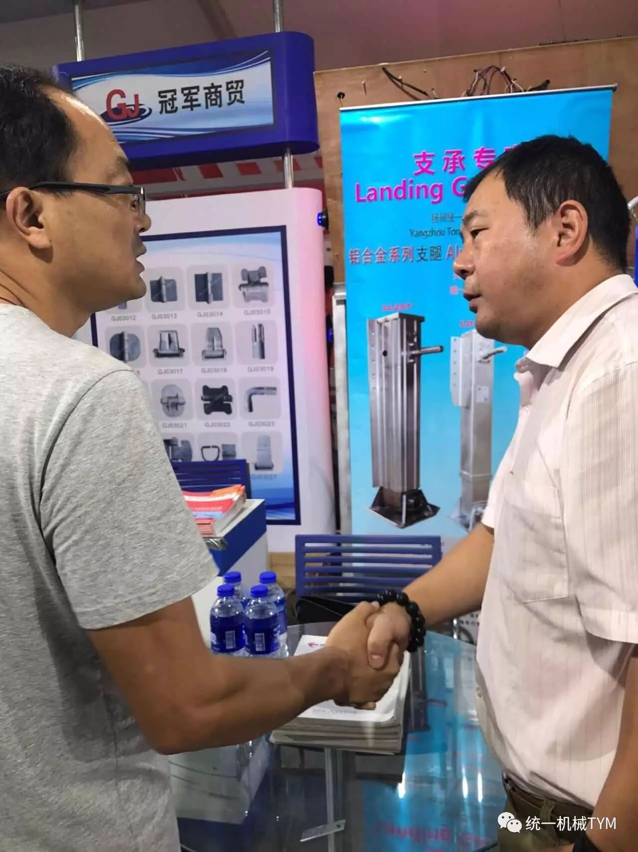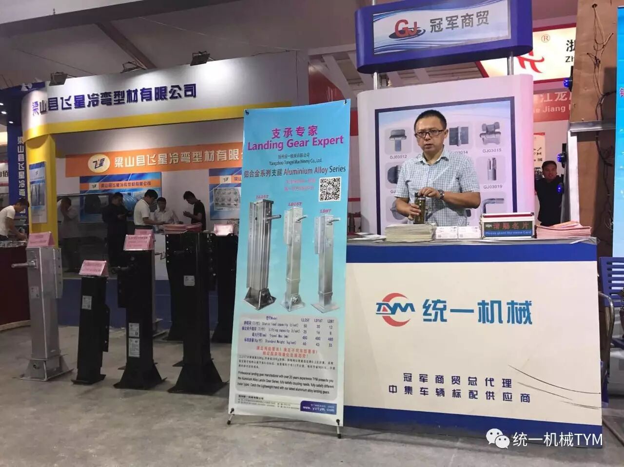 此次统一机械派遣多名人员携轻量化铝合金支腿,中置轴支腿,轿运车支腿,电动支腿等产品参展。